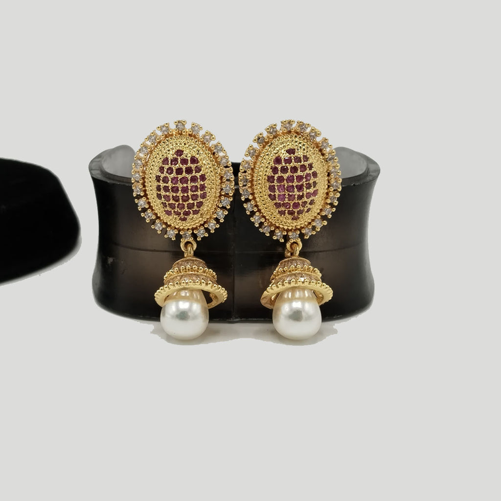 Oval Gold Stud Earrings with Pearl Drop – Rs. 1,100