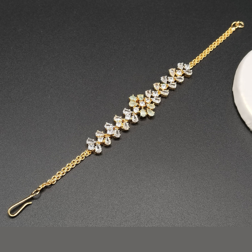 Grace your wrist with this dazzling silver and golden bracelet featuring a cluster of high-quality zircon stones. Its sleek, adjustable design ensures a perfect fit for any occasion – from formal events to everyday glamour.