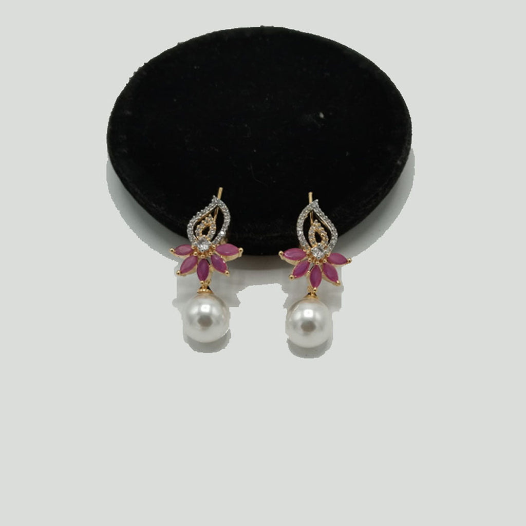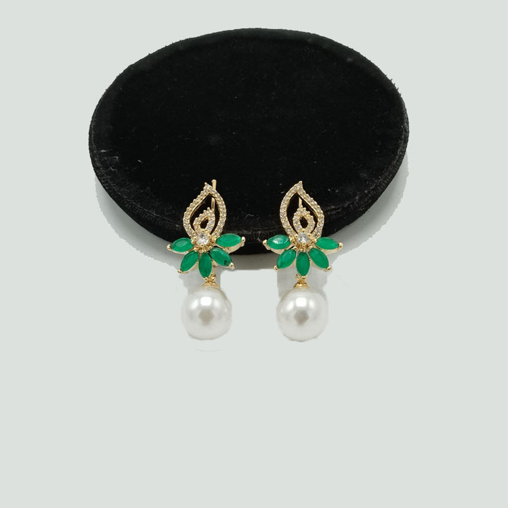 Add timeless elegance to your look with these gold-toned earrings featuring a sparkling CZ floral motif and classic white pearl drop. Ideal for formal wear, weddings, or everyday sophistication.