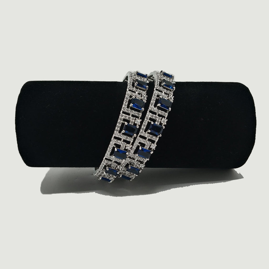 Elevate your elegance with these silver-plated bangles featuring intricate pave settings and deep sapphire blue stones. A perfect choice for weddings, formal events, or gifting.