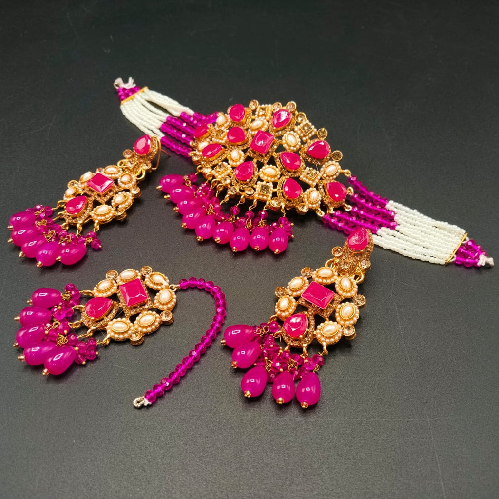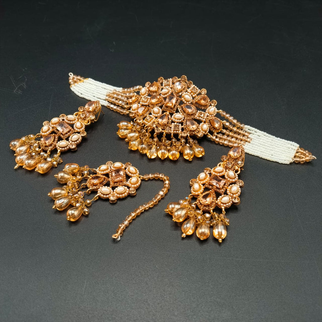 Available in multiple color options, this bridal choker set is perfect for weddings, nikah, mehndi, sangeet, walima, and festive occasions. The teardrop bead detailing adds graceful movement and enhances the overall luxury look, making it ideal for pairing with lehenga choli, sarees, maxis, and fusion bridal outfits.