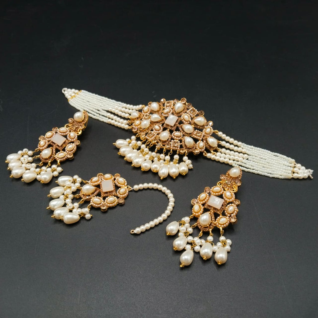 Embrace timeless bridal elegance with this Turkish Antique Bridal Choker Jewelry Set, featuring a handcrafted ethnic choker necklace adorned with delicate teardrop beads and paired with a matching tikka. Designed in an antique finish, this statement set reflects traditional Turkish and Middle Eastern artistry with a rich, regal appeal.