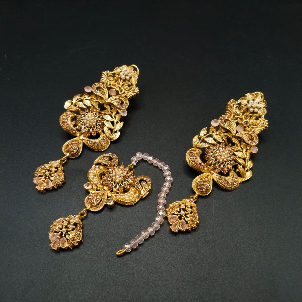 Traditional Earrings & Maang Tikka Set – Antique Gold Finish